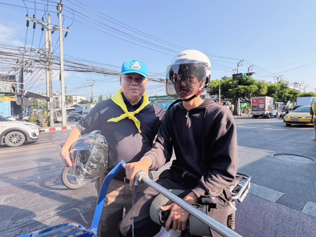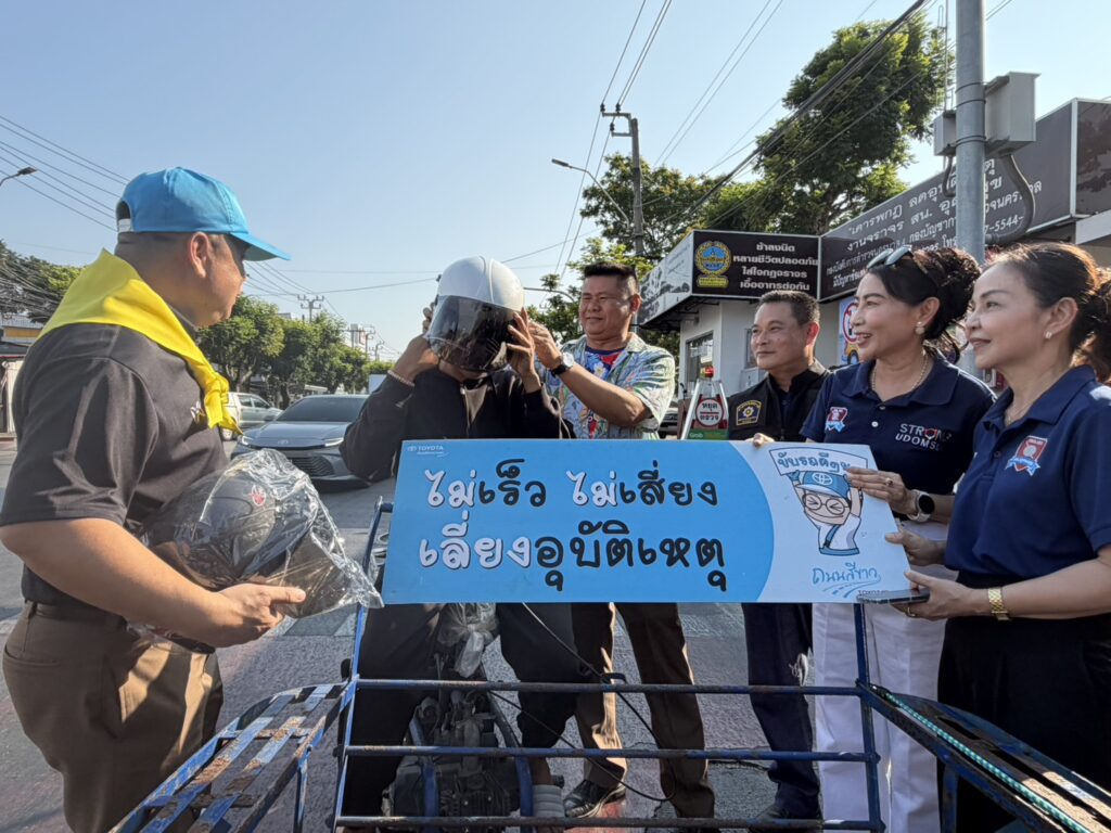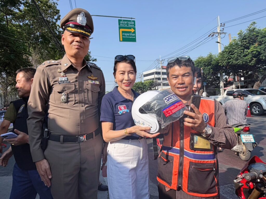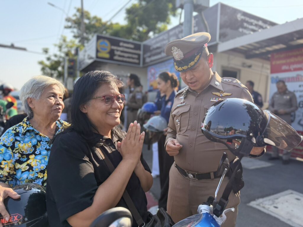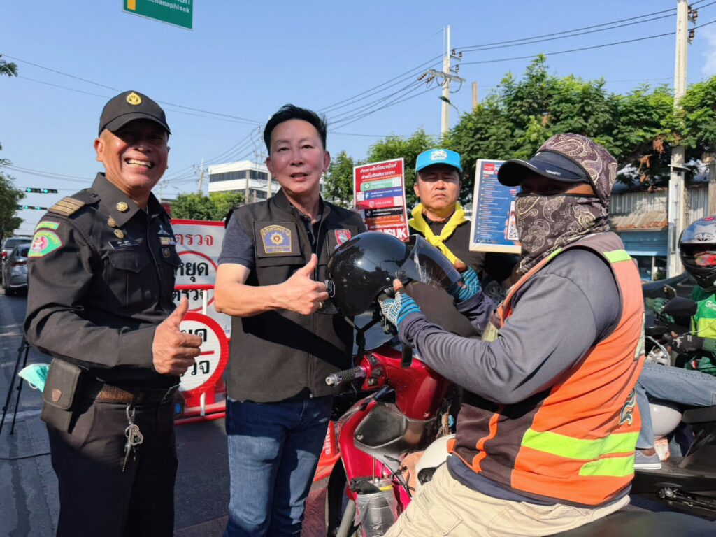 สน.อุดมสุข ได้จัดกิจกรรมแจกหมวกนิรภัย ให้กับพี่น้องประชาชน ที่ขับขี่รถสัญจรไปมา และกลับบ้านช่วงเทศกาลวันสงกรานต์