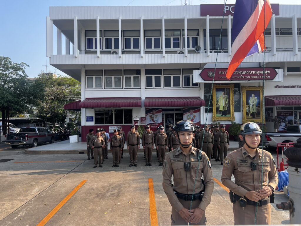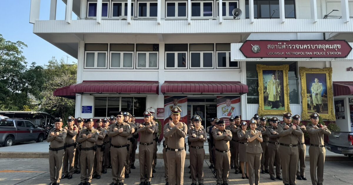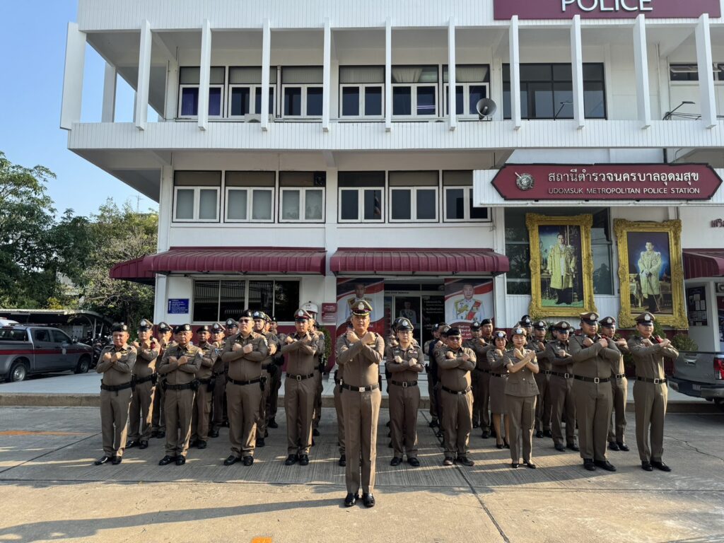 ณ บริเวณหน้าเสาธง สน.อุดมสุข