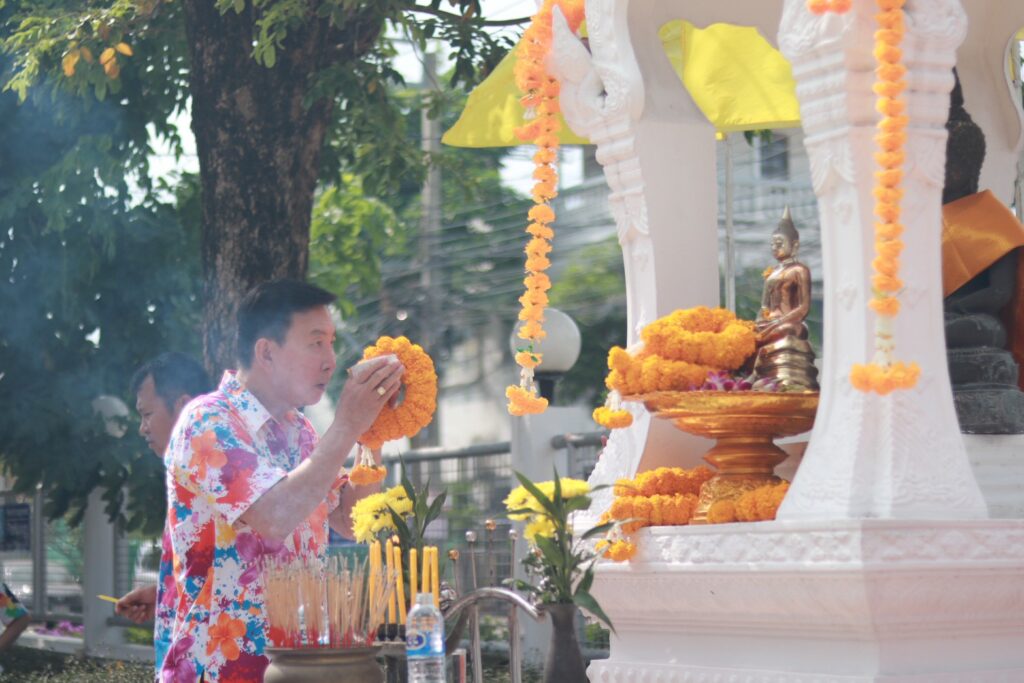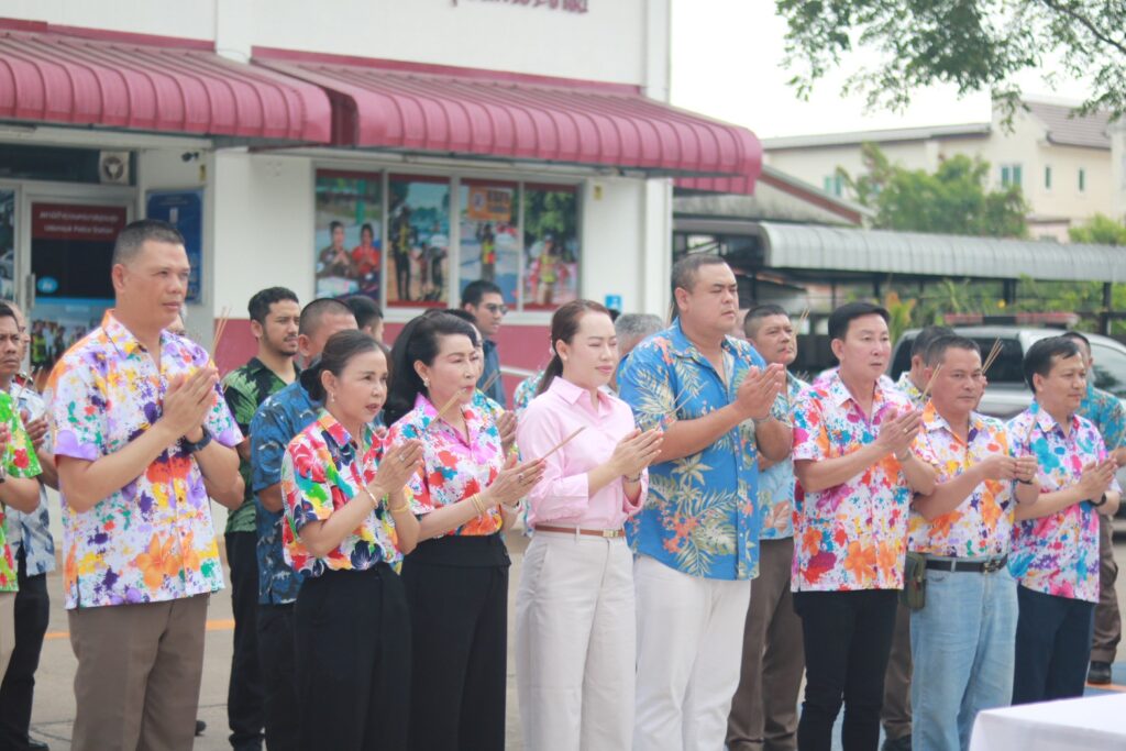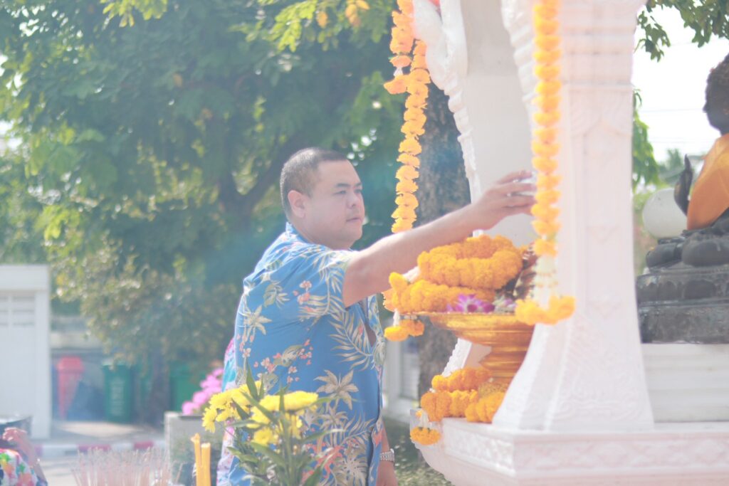 พิธีสรงน้ำพระ ไหว้ศาลพระภูมิชัยมงคลทำบุญเลี้ยงพระเพล